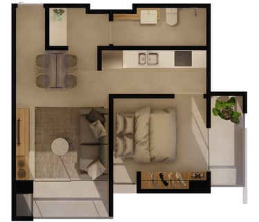 Departamentos monoambientes de 25m2. Compuesto por sala, cocina, comedor, baño y balcon con parrilla