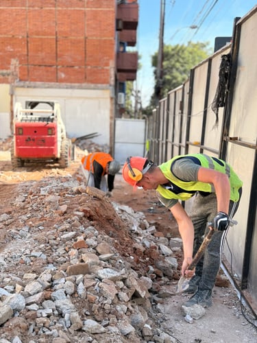 El 12 de Junio de 2025 finalizamos la demolición del inmueble ubicado en Jose Berges y Boqueron. Ultimando detalles para arrancar palada inicial del Edificio COSMO.