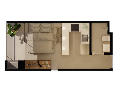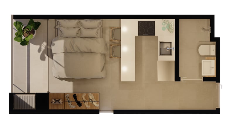 Departamentos monoambientes de 25m2. Compuesto por sala, cocina, comedor, baño y balcon con parrilla.